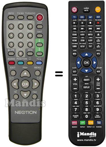 Télécommande qui remplace celle d'origine car elle possède les mêmes fonctions.