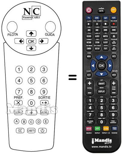 Il ne s'agit pas d'une télécommande universelle mais d'une télécommande qui remplace celle d'origine.
