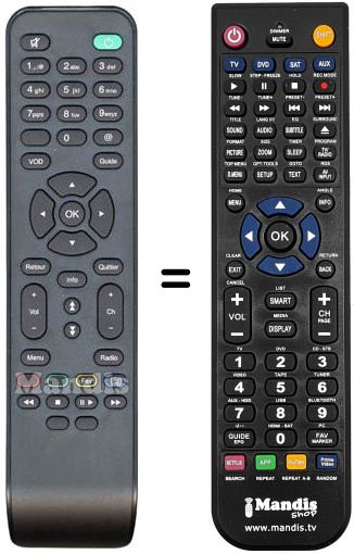 Télécommande qui remplace celle d'origine car elle possède les mêmes fonctions.