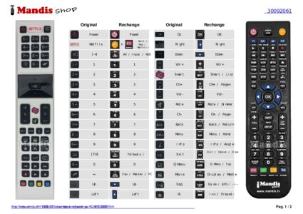 Un document est inclus pour vous aider à utiliser facilement la nouvelle télécommande, en indiquant la correspondance des boutons.