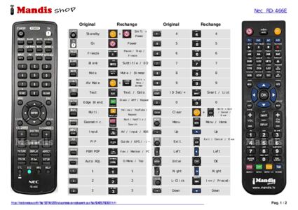Un document est inclus pour vous aider à utiliser facilement la nouvelle télécommande, en indiquant la correspondance des boutons.
