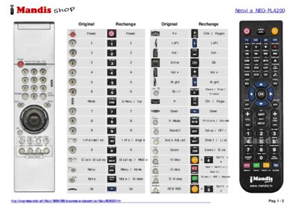 Cette télécommande remplace entièrement votre NEO-PL4200 et offre toutes les fonctions de l'originale.