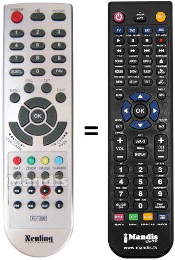 Télécommande qui remplace celle d'origine car elle possède les mêmes fonctions.