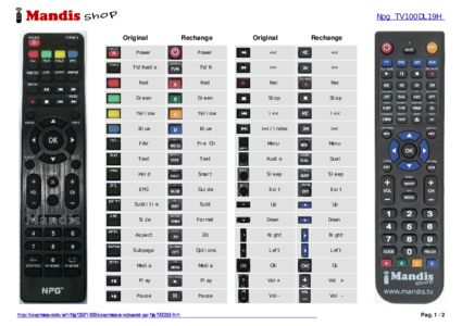 Accueil > Marques > Télécommandes Npg > Télécommande pour Npg TV100DL19H