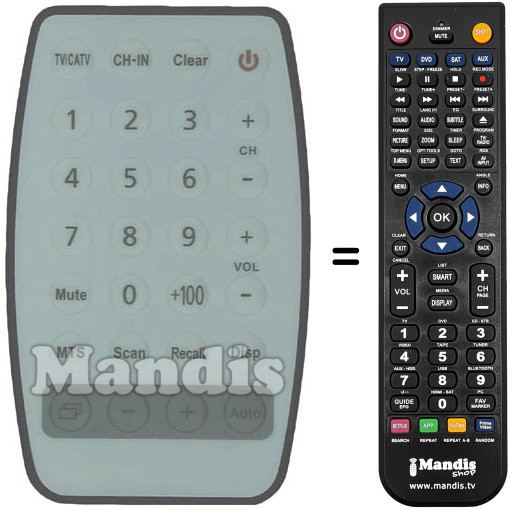Télécommande qui remplace celle d'origine car elle possède les mêmes fonctions.