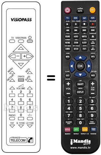 Télécommande qui remplace celle d'origine car elle possède les mêmes fonctions. Il ne s'agit pas d'une télécommande universelle mais d'une télécommande qui remplace celle d'origine. Vous recevrez la télécommande prête à fonctionner, vous n'aurez qu'à mettre les piles. Il n'est pas nécessaire de la programmer. Nous vous garantissons que la télécommande aura exactement les mêmes fonctions que celle d'origine.