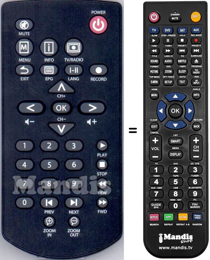 Télécommande qui remplace celle d'origine car elle possède les mêmes fonctions.
