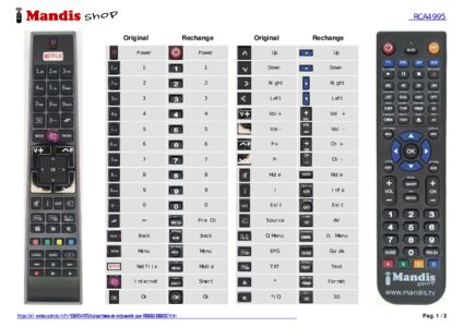 Un document est inclus pour vous aider à utiliser facilement la nouvelle télécommande, en indiquant la correspondance des boutons.
