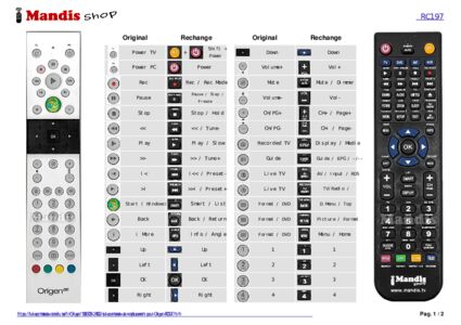 Cette télécommande remplace entièrement votre RC197 et offre toutes les fonctions de l'originale.