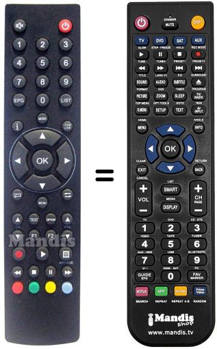 Télécommande qui remplace celle d'origine car elle possède les mêmes fonctions.