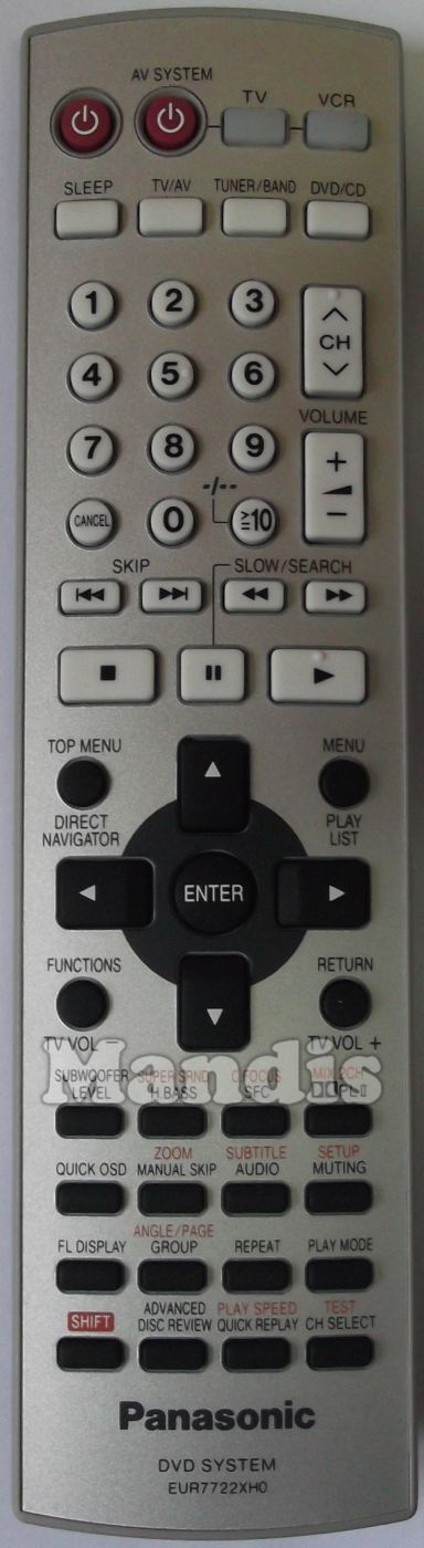 Télécommande d'origine EUR7722XH0 pour chaîne hi-fi de la marque Panasonic. Il s'agit d'un modèle de télécommande d'origine.