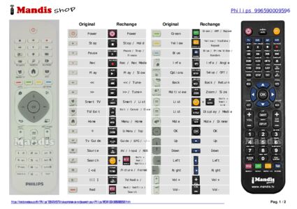 Un document est inclus pour vous aider à utiliser facilement la nouvelle télécommande, en indiquant la correspondance des boutons.