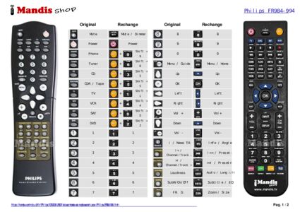 Un document est inclus pour vous aider à utiliser facilement la nouvelle télécommande, en indiquant la correspondance des boutons.