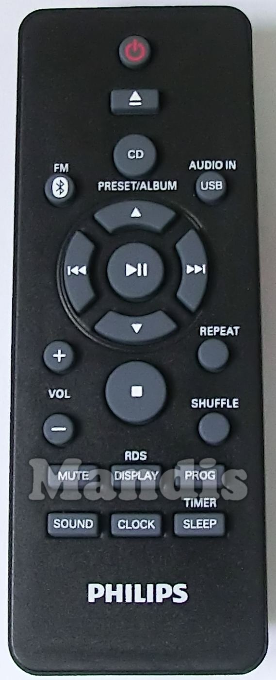 Télécommande d'origine 996510065953 pour chaîne hi-fi de la marque Philips. Il s'agit d'un modèle de télécommande d'origine.