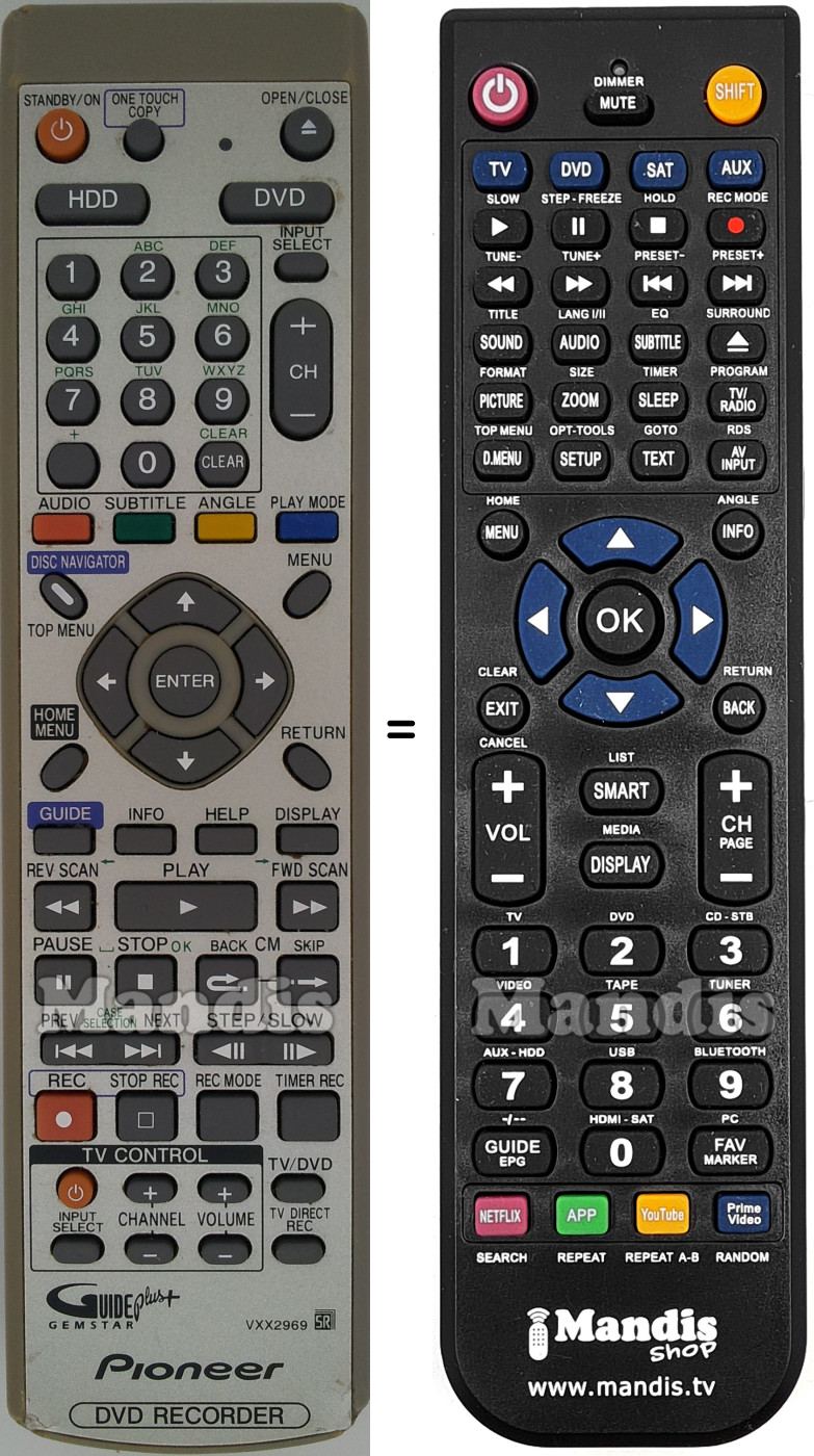 Cette télécommande remplace entièrement votre VXX2969 et offre toutes les fonctions de l'originale.