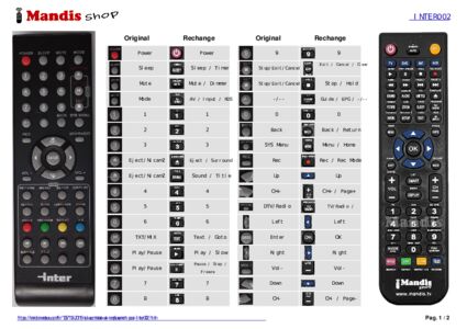 Un document est inclus pour vous aider à utiliser facilement la nouvelle télécommande, en indiquant la correspondance des boutons.