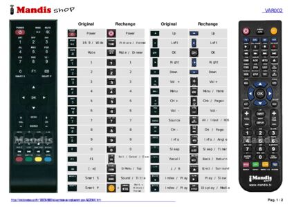 Un document est inclus pour vous aider à utiliser facilement la nouvelle télécommande, en indiquant la correspondance des boutons.