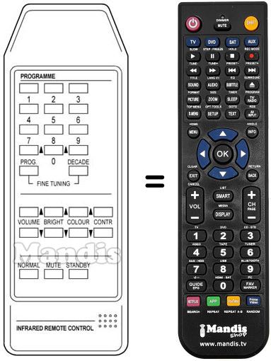 Télécommande qui remplace celle d'origine car elle possède les mêmes fonctions.