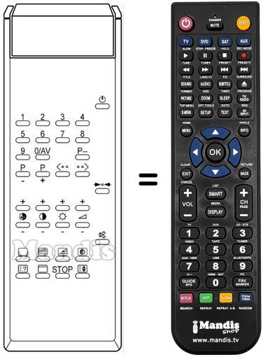 Télécommande qui remplace celle d'origine car elle possède les mêmes fonctions.