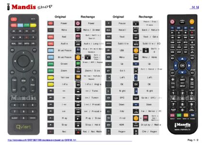 Un document est inclus pour vous aider à utiliser facilement la nouvelle télécommande, en indiquant la correspondance des boutons.