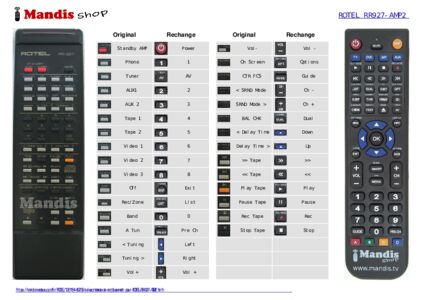 Cette télécommande remplace entièrement votre RR-927-AMP2 et offre toutes les fonctions de l'originale.