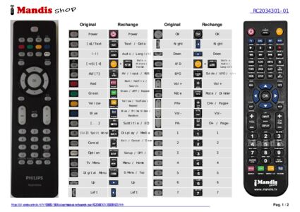 Un document est inclus pour vous aider à utiliser facilement la nouvelle télécommande, en indiquant la correspondance des boutons.