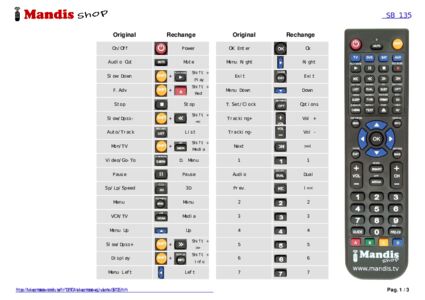 Un document est inclus pour vous aider à utiliser facilement la nouvelle télécommande, en indiquant la correspondance des boutons.