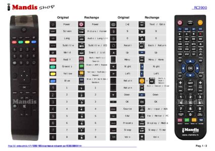 Un document est inclus pour vous aider à utiliser facilement la nouvelle télécommande, en indiquant la correspondance des boutons.