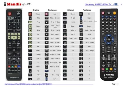 Cette télécommande remplit toutes les fonctions de la télécommande d'origine: Power, Tv Source/Function, Open/Close, Sleep, 1/RDS Display, 2, 3/TA, 4/PTY-, 5/PTY Search, 6/PTY+, 7, 8, 9, Disc Menu, 0, Pop Up/Title Menu, I<<, >>I, <<, >>, Stop, Play, Pause, Vol+, Vol-, Tuning/CH+, Tuning/CH-, Mute, S/W Level, Full Screen, Home, Repeat, Tools, Info, Up, Down, Right, Left, Enter, Return, Exit, Red, Green, Yellow/Tuner Memory, Blue/MO/ST, Smart Hub, Search, 2D→3D, 3D Sound, vTuner, Audio, Subtitle, Effect/Sound