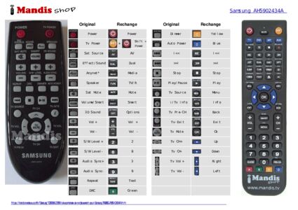 Un document est inclus pour vous aider à utiliser facilement la nouvelle télécommande, en indiquant la correspondance des boutons.
