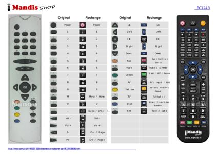 Un document est inclus pour vous aider à utiliser facilement la nouvelle télécommande, en indiquant la correspondance des boutons.