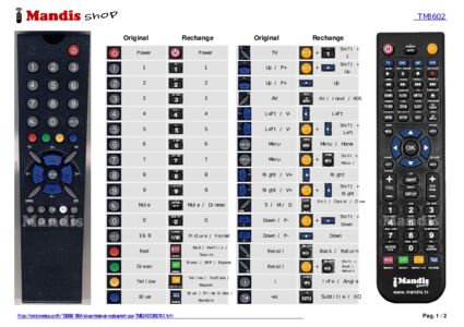 Un document est inclus pour vous aider à utiliser facilement la nouvelle télécommande, en indiquant la correspondance des boutons.