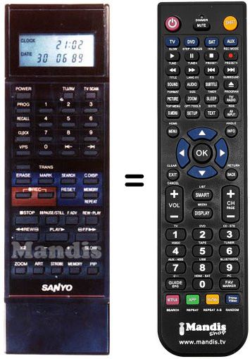Télécommande qui remplace celle d'origine car elle possède les mêmes fonctions.