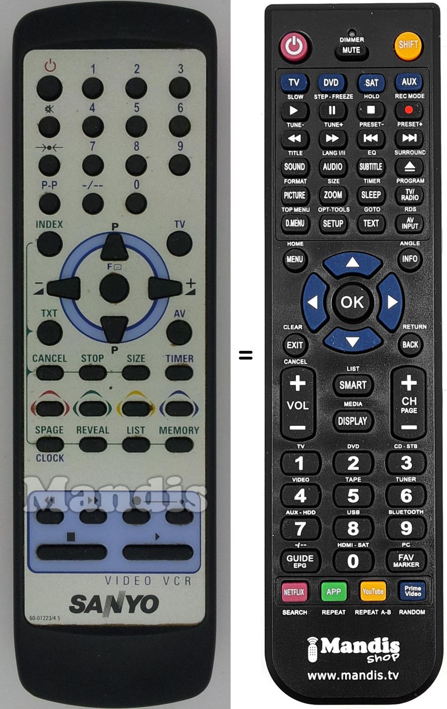 Télécommande qui remplace celle d'origine car elle possède les mêmes fonctions.