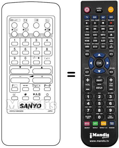 Télécommande qui remplace celle d'origine car elle possède les mêmes fonctions.