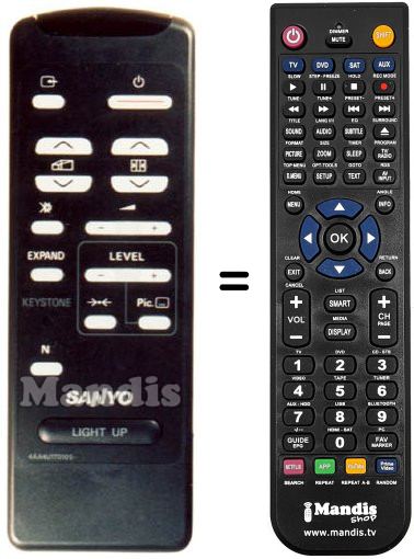 Télécommande qui remplace celle d'origine car elle possède les mêmes fonctions.