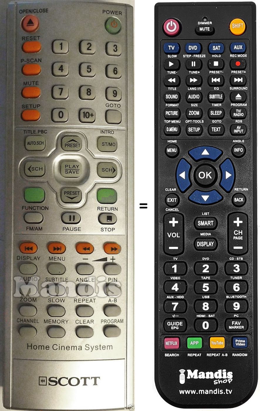 Télécommande qui remplace celle d'origine car elle possède les mêmes fonctions.