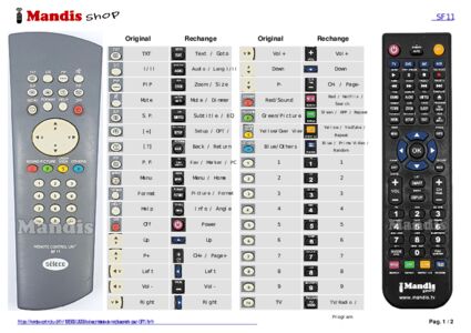Accueil > Marques > Télécommandes Seleco > Télécommande pour SELECO SF11