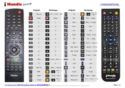 Un document est inclus pour vous aider à utiliser facilement la nouvelle télécommande, en indiquant la correspondance des boutons.