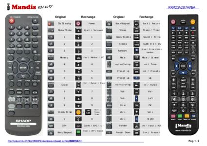 Un document est inclus pour vous aider à utiliser facilement la nouvelle télécommande, en indiquant la correspondance des boutons.