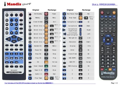 Cette télécommande remplace entièrement votre Audio System (RRMCGA160AWSA) et offre toutes les fonctions de l'originale.