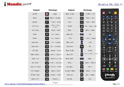 Question sur Shinelco TVL1511D remote control