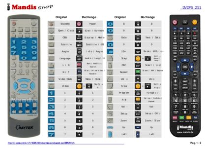 Cette télécommande remplace entièrement votre DVDPS 251 et offre toutes les fonctions de l'originale.