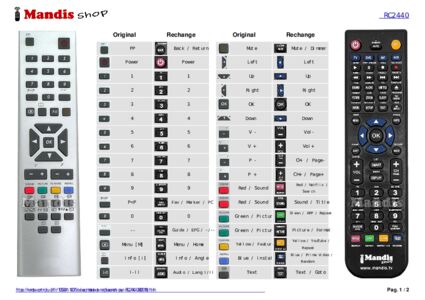 Cette télécommande remplace entièrement votre 2440 RC2440 et offre toutes les fonctions de l'originale.