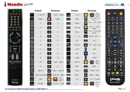 Un document est inclus pour vous aider à utiliser facilement la nouvelle télécommande, en indiquant la correspondance des boutons.