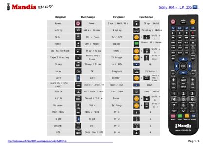 Un document est inclus pour vous aider à utiliser facilement la nouvelle télécommande, en indiquant la correspondance des boutons.