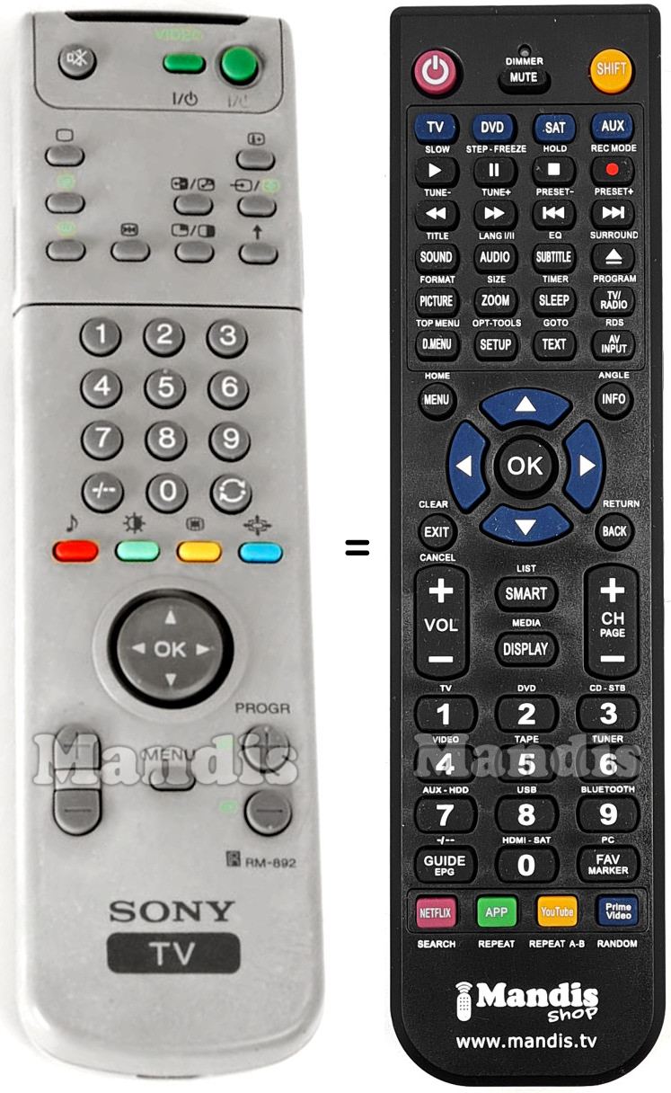 Cette télécommande remplace entièrement votre RM-892 (141857211) et offre toutes les fonctions de l'originale.