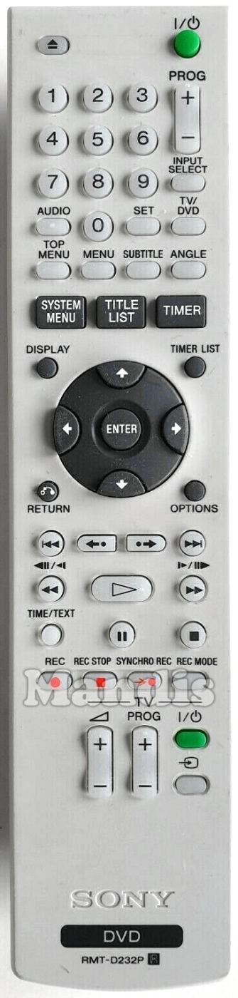 Télécommandes équivalentes qui remplacent la télécommande SONY RMT-D232P (147966012) et possèdent exactement les mêmes fonctions :