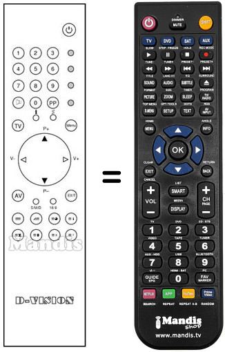 Télécommande qui remplace celle d'origine car elle possède les mêmes fonctions.