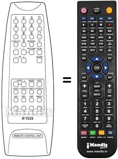 Télécommande qui remplace celle d'origine car elle possède les mêmes fonctions.
